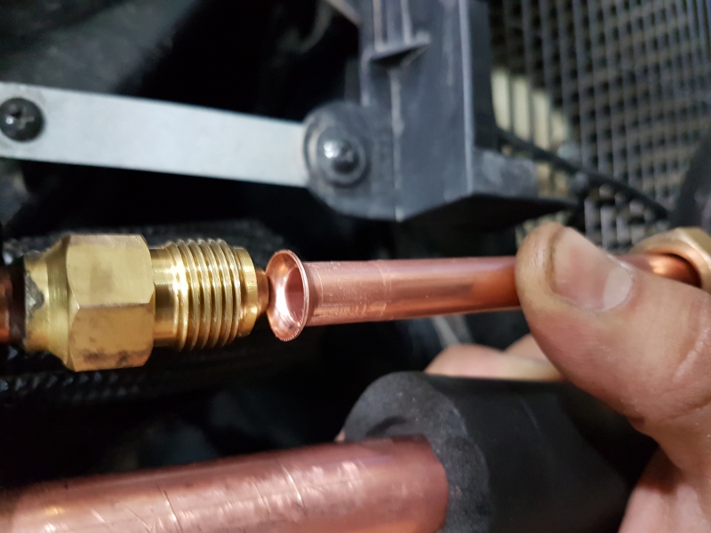 در تصویر پایین یک نمونه از اتصالات کولر گازی اسپلیت را مشاهده میفرمایید که به مرور زمان نشتی های خیلی ریز از آنها اتفاق می افتد..