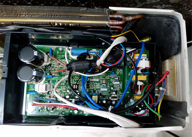 تنها روشی که که میتوانیم کولر گازی اینورتر را تشخیص دهیم وجود یک برد الکترونیکی نسبتا بزرگ در قسمت کندانسور میباشد که برد را داخل یک جعبه جاسازی میکنند.